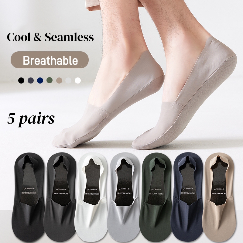 5 Pairs Men's Anti-Slip Ice Silk Deodorant Shallow Socks